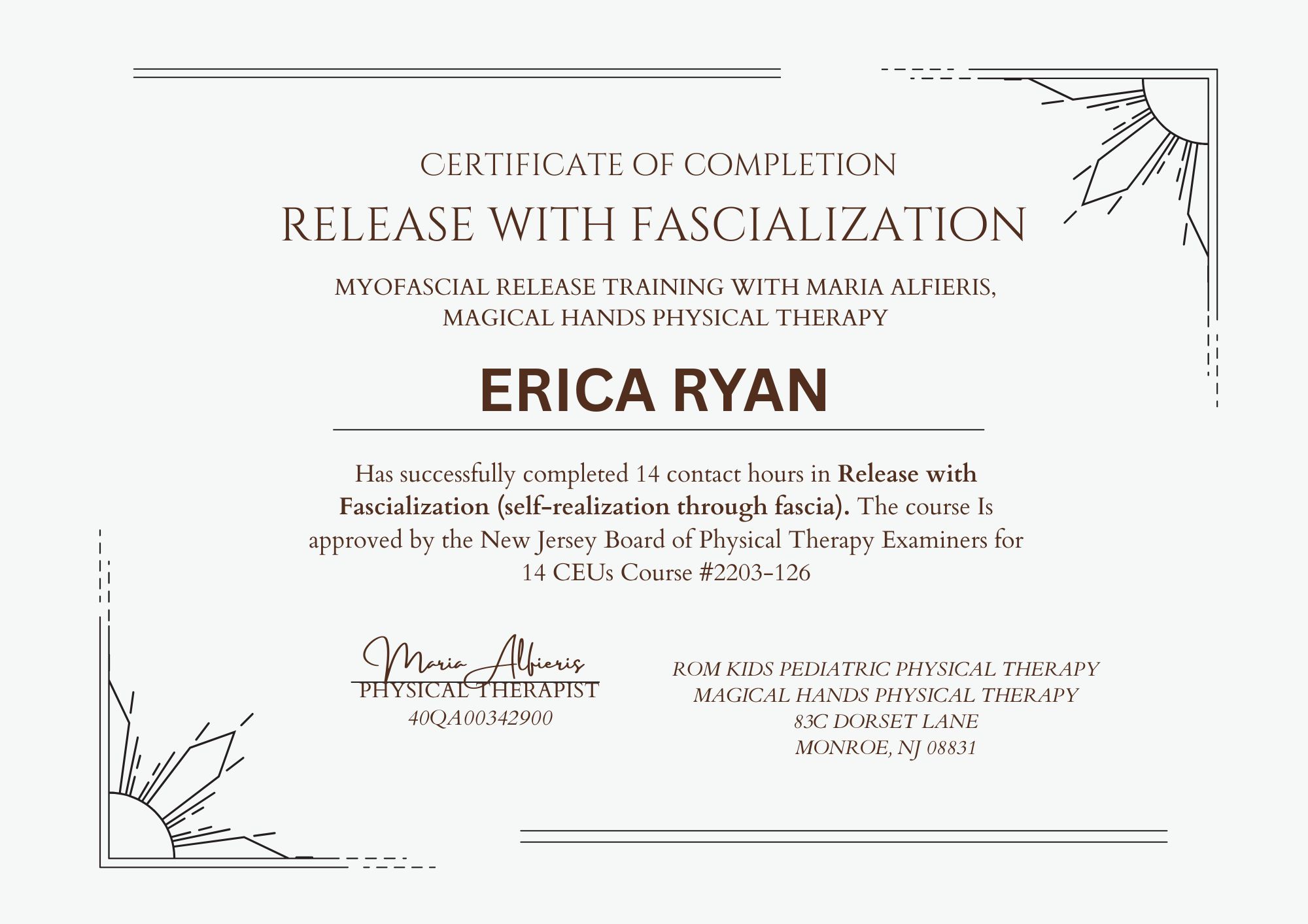 Erica continues to inspire others in the field, encouraging practitioners to gain diverse experience early in their careers and to approach every treatment as a unique opportunity to restore balance, vitality, and connection.